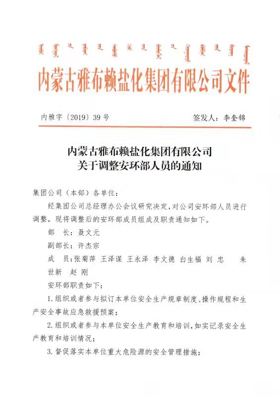 关云开平台·(中国)官方网站-云开(中国) 于调整安环部人员的通知