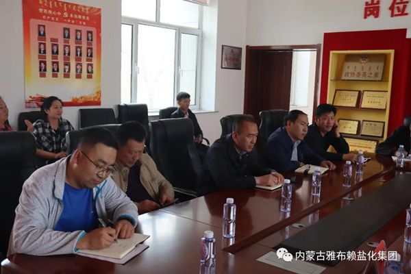 4月22日,雅盐化公司党委书记、董事长孙刚德,党委副书记、总经理李奎锦一行到公司党史学习教育包联的雅镇新呼都格嘎查走访调研,并在雅镇党员活动室召开包联帮扶座谈会。阿右旗供销合作社负责人,内蒙古蓝科生物科技有限公司领导,雅镇党委书记马西别力格,镇长赵生贵,以及新呼都格嘎查嘎查达王明光、驻村工作队成员等有关人员参加座谈会。